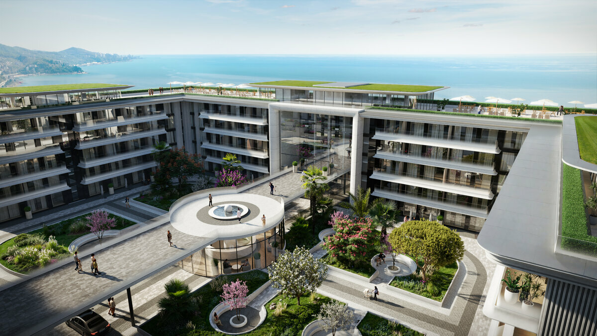 Апартаменты разного размера выделены цветом: компактные студии от 20 м², одно комнатные от 30 м² и двухкомнатные — до 60 м². Во всех лотах есть функциональная кухня, санузел с душевой кабиной и панорамные окна, многие номера оснащены лоджиями для отдыха.